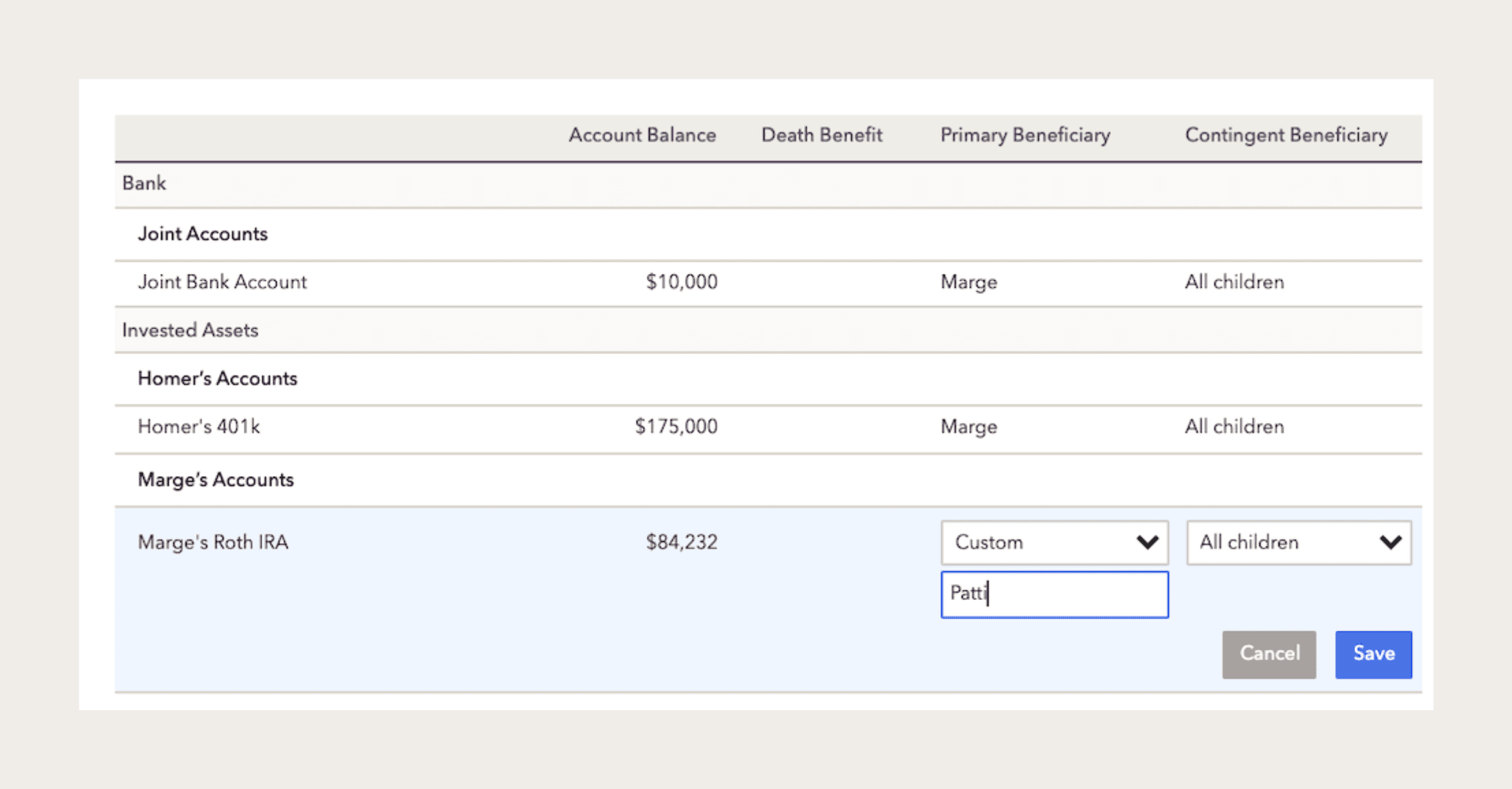 Families are always changing so it’s a good idea to review the Beneficiaries section periodically. Make sure clients stay up to date on who should receive access to their accounts after their plan ends. For example, if passing assets down to their grandchildren is important to them and they’ve just received good news about the arrival of a new grandbaby, track updates within the beneficiary section.